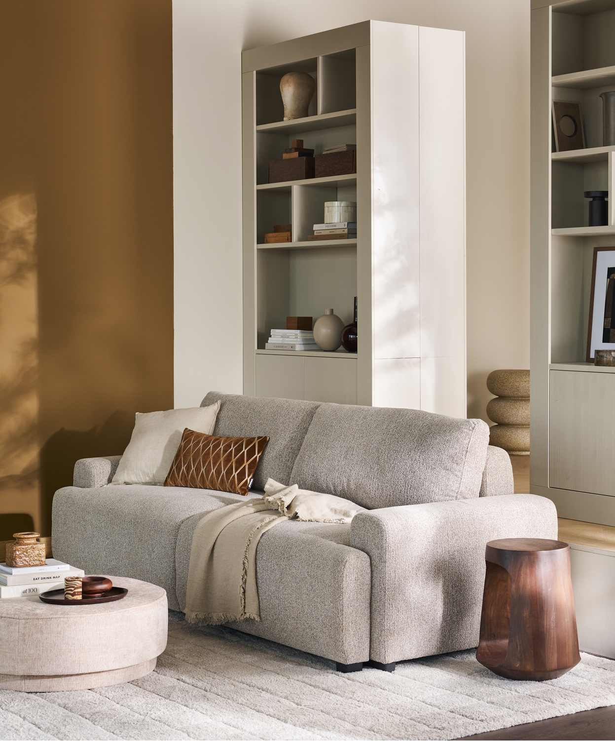De modulaire kastenserie Brock combineert stoere eenvoud met warme tinten en een natuurlijke houtstructuur.