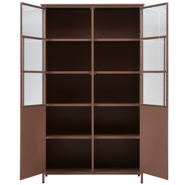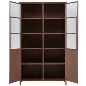 Modern und stilvoll – mit viel Platz zum Präsentieren und Verstauen. Diese Vitrine Exhibit von WOOOD ist aus Metall mit mattbrauner Beschichtung gefertigt. Die Holzböden bieten eine schöne Präsentationsfläche für Ihre liebsten Wohnaccessoires. Ein solcher Schrank wirkt zeitlos und ist vielseitig einsetzbar. Als Vitrine in Küche und Essbereich, als Aufbewahrungs- und Ausstellungsschrank im Wohnzimmer, aber auch im Büro oder großen Flur macht sich Exhibit gut. Exhibit hat vier Böden. Der Abstand zwischen den Böden beträgt 29–31 cm.