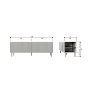Madu has four doors with gold-coloured knobs. Behind these doors are 4 shelves. The spaces have a width of 76 cm and a depth of 43 cm.