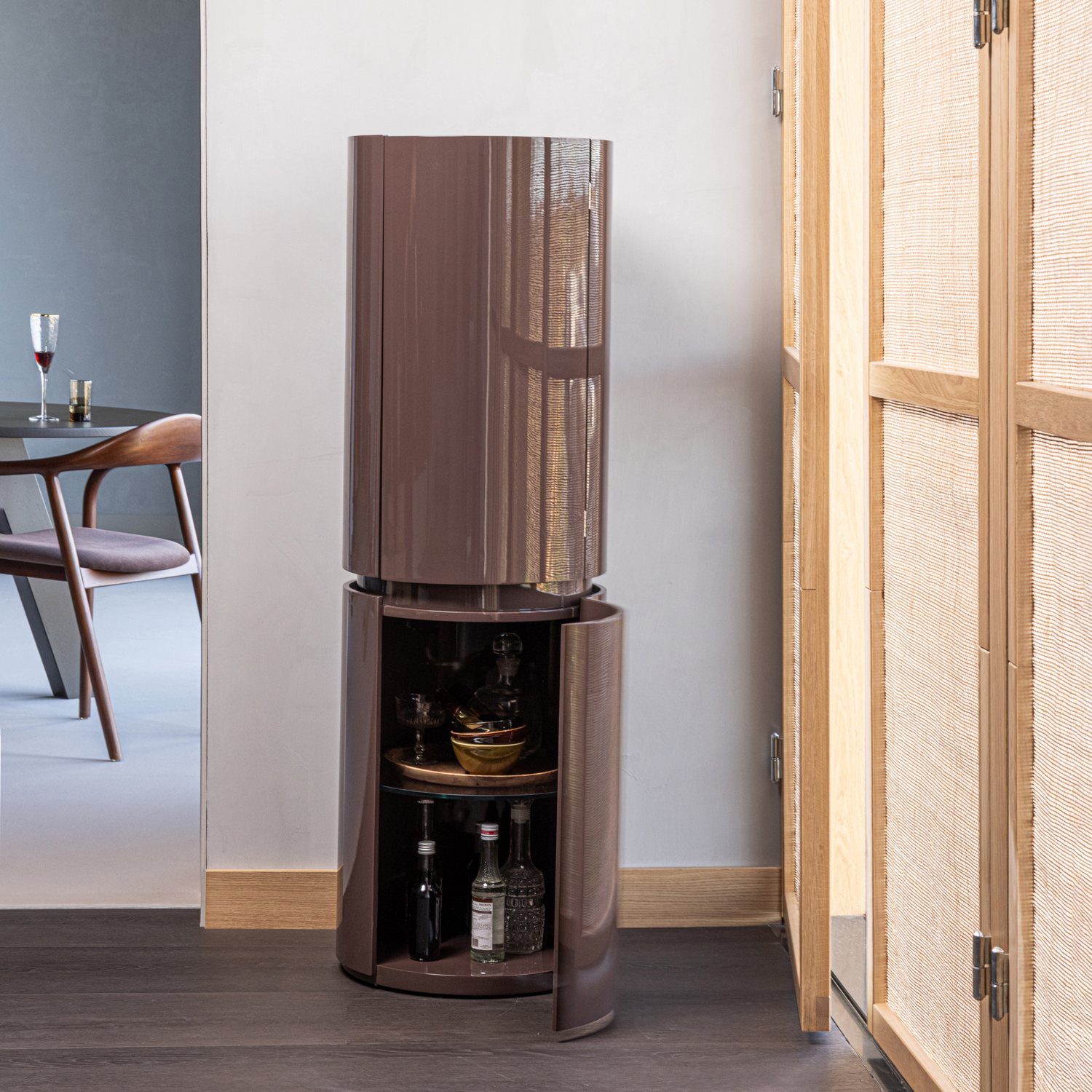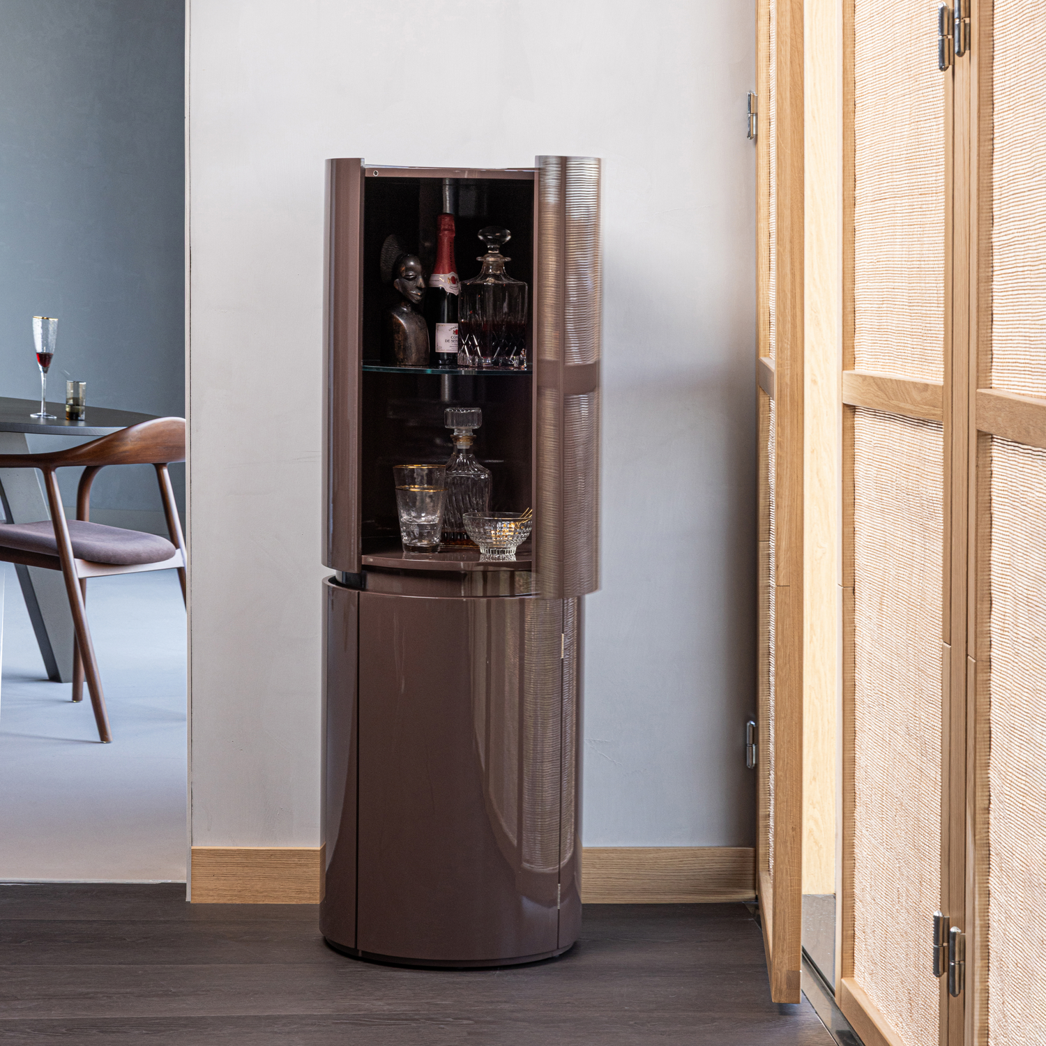 Sera round cabinet 135xø45 cm wood gloss dark brown