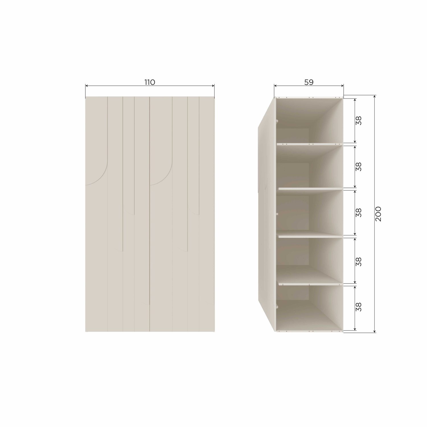 This original and cheerful cabinet from WOOOD is the perfect neutral base for your bedroom. The doors have a wavy pattern, inspired by raindrops sliding down a window, resulting in unique wood carvings. The Rain cabinet has a metal clothes rail and a top shelf for neat storage space for your clothes. Would you rather not have a hanging section? No problem! With our handy shelf set, you can easily adjust the cabinet to your wishes.