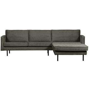 La série de sièges Rodeo de WOOOD est moderne, robuste et contemporaine. Ce canapé spacieux avec méridienne est innovant et confectionné dans un magnifique velours riche et texturé. Ce tissu, qui imite le velours, lui confère une allure chic. Ce canapé offre un espace généreux et de nombreuses places assises. Son élégant cadre en métal noir et ses coussins amovibles s'intègrent subtilement dans le salon.