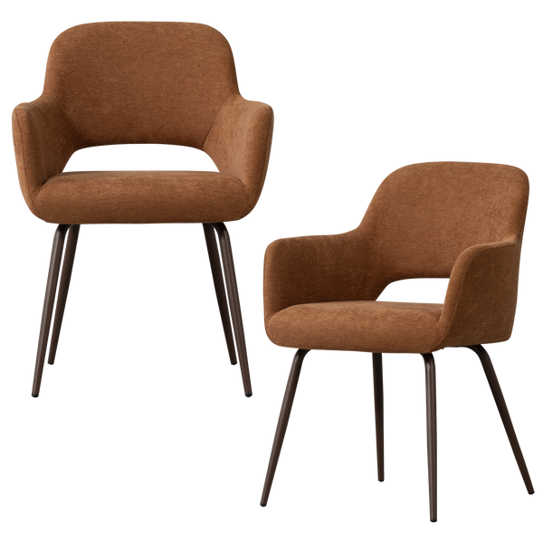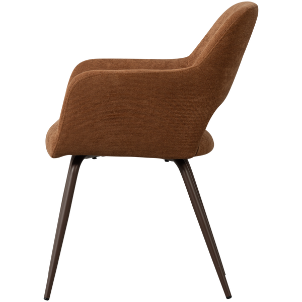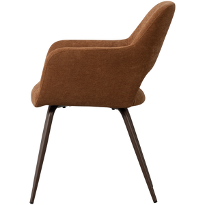 Le tissu doux et agréable au toucher présente une subtile variation de couleur qui confère à la chaise un aspect chaleureux. Ce tissu 100 % polyester est adapté à un usage quotidien. La hauteur d'assise est de 47 cm, la largeur de l'assise est de 42 cm et la profondeur de l'assise est de 45 cm. Les accoudoirs mesurent 25 cm de haut, 7 cm de large et 32 cm de profondeur, offrant un confort supplémentaire sans gêner. La chaise est robuste et peut supporter jusqu'à 100 kg, pour un poids total de 7 kg. Les pieds mesurent 41 cm de haut et 3 cm d'épaisseur, ce qui assure une base stable.