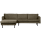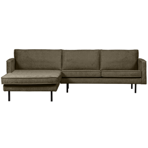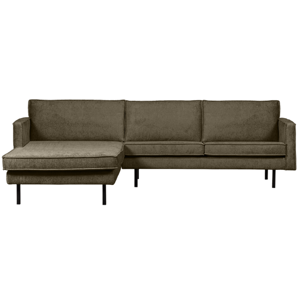De zitmeubelserie Rodeo van het merk WOOOD is modern, stoer en eigentijds. Deze ruime bank met chaise longue is vernieuwend en uitgevoerd in een mooie volle structure velvet stof. Deze stof lijkt op velours en geeft de bank een chique uitstraling. De bank is royaal en biedt volop zitruimte. Door het slanke zwarte metalen frame en de losse kussens toont de bank subtiel in de living.