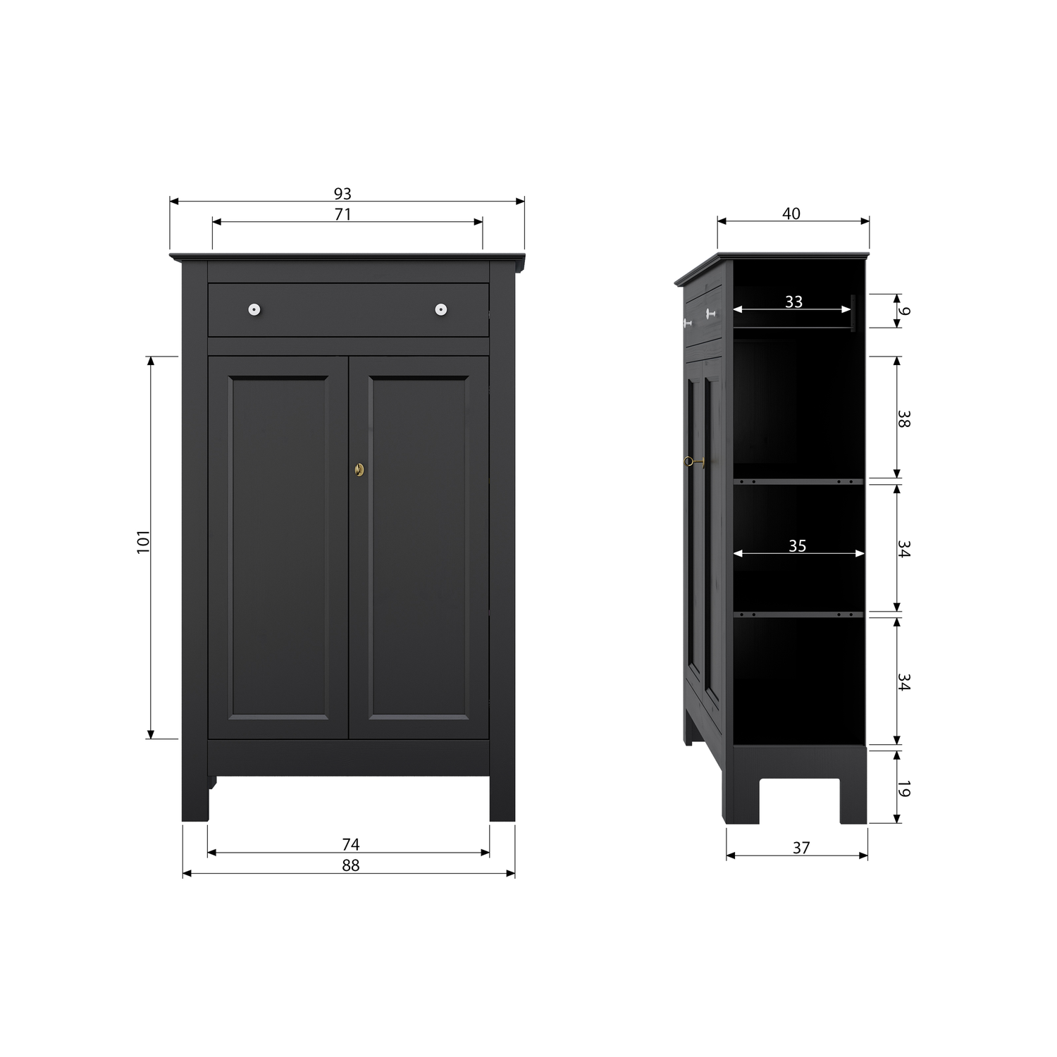 Wat een plaatje! Deze stoere meidenkast Eva uit de WOOOD collectie. Deze kast brengt direct sfeer in je interieur. Hij past prima in meerdere woonstijlen en leent zich perfect voor in een woonkamer of slaapkamer. De kast is gemaakt van zwart gelakt grenenhout dat afkomstig is van een FSC gecertificeerde leverancier. Het interieur van deze kast is gemaakt van gemelamineerd spaanplaat en de handige lade bovenin, met 2 zwart metalen knoppen en is voorzien van solide metalen ladegeleiders. De binnenkant van de kast is ingericht met 3 brede legplanken. De twee deuren in de kast zijn voorzien van een slot en sleutel. Deze wandkast bied je genoeg opbergruimte voor alle spullen die je niet graag laat zien.