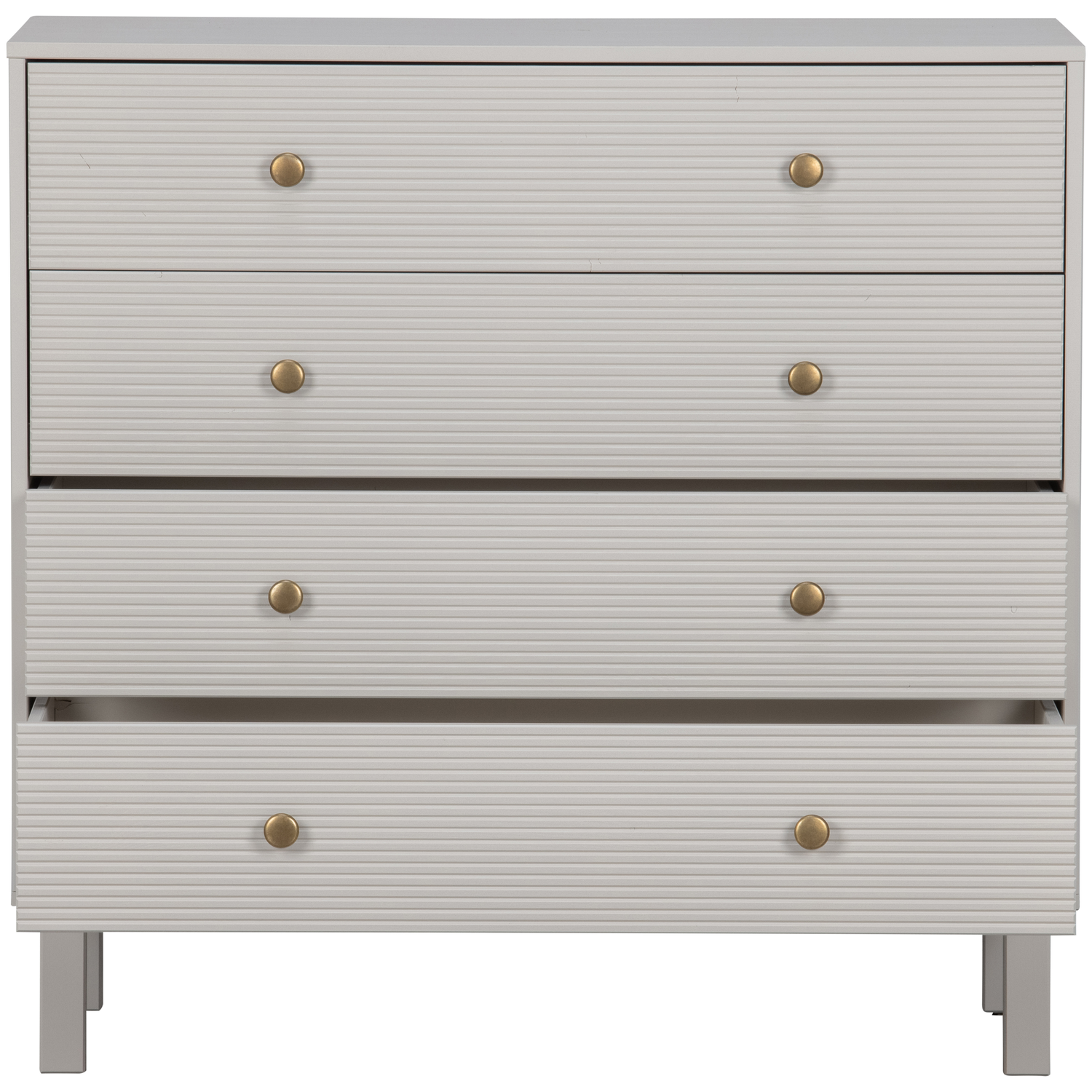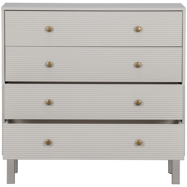 Madu is voorzien van vier royale laden met goudkleurige knopjes. De inhoud van de laden hebben een breedte van 86 cm en een diepte van 38 cm.