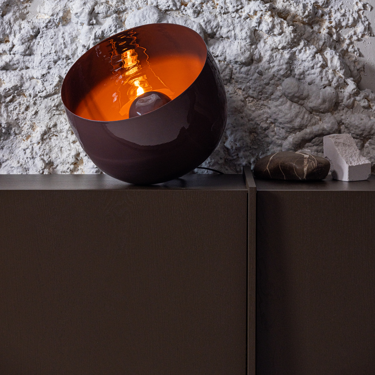 De Mero tafellamp is een echte eye-catcher die iedere ruimte laat stralen. Het ronde ontwerp en de glanzende bruine afwerking zorgen voor een warme uitstraling die direct opvalt.