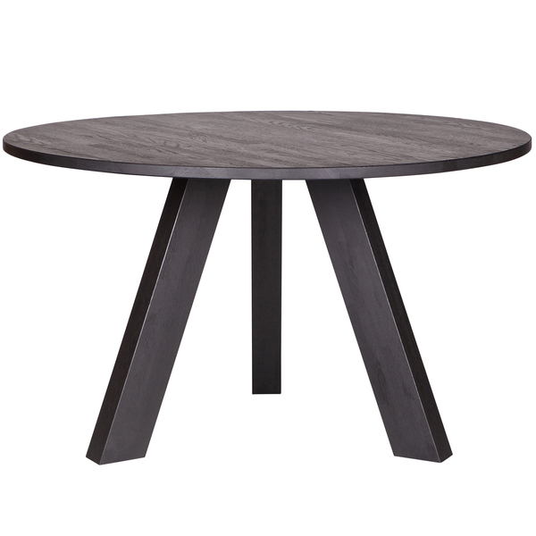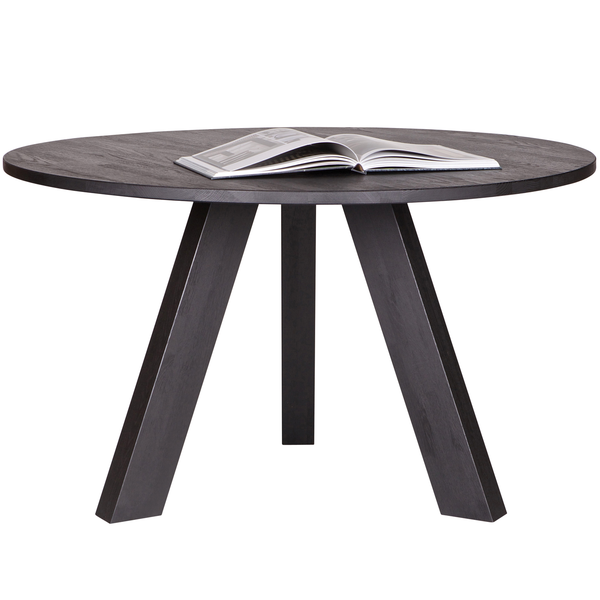 Een ronde vorm eettafel geeft een warm en gezellig gevoel. Deze massief eiken eettafel Rhonda in de kleur zwart is behandeld met 2-componenten lak waardoor het eiken slijtvast, water- en hittebestendig is. De eiken ondergrond is hierbij nog wel zichtbaar en zo behoudt de tafel zijn warme uitstraling. Dit model en deze uitstraling is helemaal van nu en geeft jouw woonsfeer een warme moderne uitstraling. Deze eettafel op drie poten heeft een diameter van 129 cm, is gemaakt van stroken verlijmd, massief eikenhout (vingerlas).