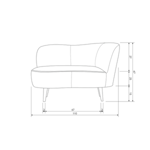 Wauw, deze Sara loungefauteuil uit de collectie van WOOOD is echt even wat anders dan standaard in het interieur! Leg er een paar sierkussens bij en je kunt er zelf compleet in weg loungen. Of dat je er knus met z'n tweeën op plaatsneemt. Deze Sara fauteuil heeft een fluweelzachte stof in de kleur khaki en is gecombineerd met zwart gelakte berkenhouten poten. Sara heeft een stevig en ondersteunend zitcomfort. De zachte afgeronde hoeken in combinatie met de comfortabele bekleding zorgen ervoor dat deze Sara loungefauteuil echt een blikvanger in het interieur is! Deze fauteuil staat goed in de woonkamer, maar kan ook als relaxte sfeermaker in de slaapkamer worden toegepast.