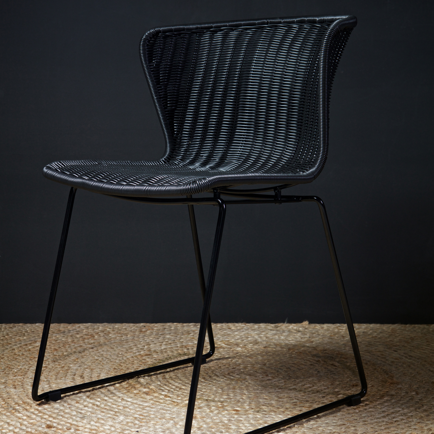 De trendy kuipstoel Wings! De kunststof rotan-look is helemaal van deze tijd en is voor zowel binnen als voor buiten geschikt. De zitting is gemaakt van polyester rotan en het frame is zwart metaal dat is voorzien van een speciale poedercoating waardoor de stoel ook prima buiten gebruikt kan worden.